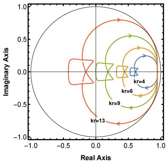Nyquist plot of with different values of .
