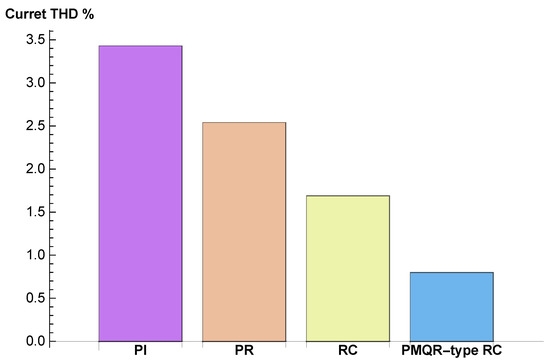 Total harmonic distortion (THD) magnitude with current controllers.