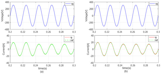 Due to the slow dynamic response of the traditional RC, a fast transient response should be achieved in the improved control scheme. When the given grid current reference steps from 20 A to 15 A at 0.24 s, the system dynamic response comparisons with the traditional PI control and the proposed PMQR-type repetitive control were as illustrated in Figure 23. It can be seen that the dynamic performance of the PMQR-type RC was almost the same as the PI control scheme. Just as mentioned in Section 3.3, fast dynamic response of the proportional controller will not be affected by slow RC, which indicates that the dynamic performance was mainly determined by the proportional controller, and the RC just like the MQR controller was only used to improve steady-state harmonics compensation.