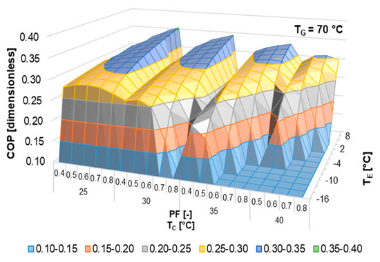 14] described a residential micro-Combined Cooling, Heating and Power (CCHP) system, including a low-temperature Proton Exchange Membrane Fuel Cell (PEMFC) power unit and a half-effect lithium bromide absorption chiller. The author carried out numerical simulations in order to demonstrate the energetic feasibility and performance of this configuration. According to the author’s results, the highest exergy utilization factor (ExUF) value was obtained for the minimum evaporator temperature (4 °C), minimum condenser temperature (27 °C), and 67 °C in both generators (high- and low-temperature) of the absorption chiller. Maryami and Dehghan [