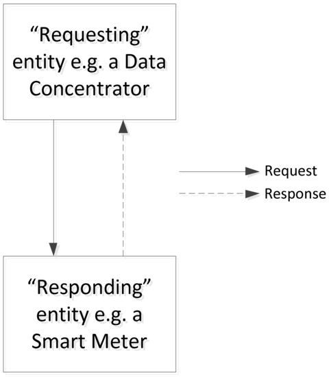 In [19] the concept of a scoring scheme for interoperability testing in the context of AMI is introduced. This scoring scheme is accompanied by a test verdict tracing scheme that can be used for pointing the tangible interoperability layer of the Smart Grid Architecture Model (SGAM) framework [13] that is responsible for lack of interoperability when such a case occurs. In this work, the “quality of interoperability” between the relevant components of interest is investigated. To clarify what is meant by the phrase “quality of interoperability”, the reader has to take into account the following: the dynamics of interactions between two (or more) components of interest are characterised by a hierarchy of interactions. This hierarchy is defined in relevant communication protocol specification documents, e.g., [20]. Normally, two types of entities exist, a “requesting” and a “responding” one. The “requesting” entity is on the higher-level of the hierarchy, and the “responding” entity is on the lower-level of the hierarchy. In Figure 2, a generic form of interactions between relevant components is presented.