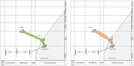 In this case, the actors involved are the smart meter(s) and data concentrator. The mapping of this use case on the SGAM component, communication and information layers can be represented as shown in Figure 3 and Figure 4.