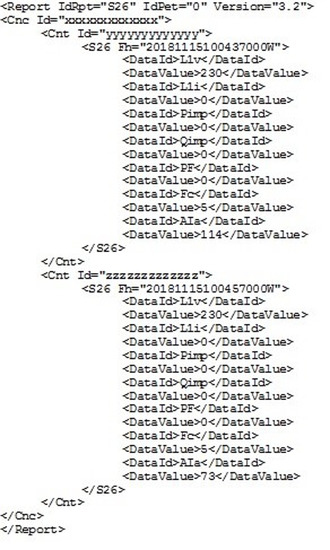 where Nl is the total number of lines; lr stands for the additional lines of the report, lr = 4, i.e., 2 lines for report opening and 2 lines for the data concentrator ID; NSM is the total number of smart meters examined; lSMr is the number of additional lines added by the report creation, lSMr = 4, 2 lines for the smart meter ID and 2 lines for the type of variables reporting (here: instantaneous values); Nv is the number of variables recorded for each smart meter.