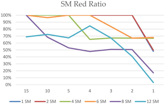 For eight smart meters, a similar trend is observed, meaning that the amount of information recorded declines as the sampling rate increases. It is noticed that there is 100% success for a sampling ratio of 15 min. In addition, for certain sampling rates, the performance is not better than that corresponding to the equivalent values for 12 smart meters.