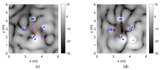 WDLS method in case 2; (c) the subspace method in case 1; (d) the subspace method in case 2.
