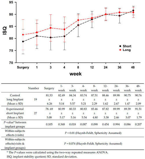 3.3. Comparison of Implant Stability between the Long and Short Implants