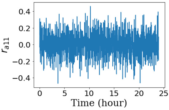 Residual for 24 h when each sensor in the ADAPT-Lite system has an additive noise with a normal distribution, , and the system is in normal operation.