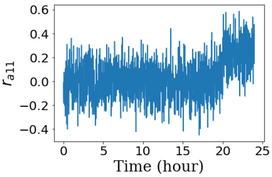 Residual for 24 h when each sensor in the ADAPT-Lite system has an additive noise with a normal distribution, , and 0.25 occurs at h.