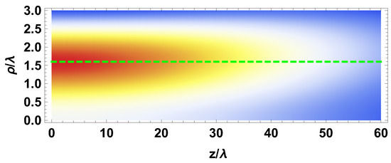 introducing cylindrical coordinates and , the amplitude and phase of the fields () given by Equations (8) and (9) can be expressed (assuming a (1-1) Laguerre Gaussian beam) as: