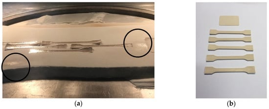 Mechanical tests: mechanical tests were performed on a Z100 universal testing machine (Zwick Roell, Ulm, Germany). The tests were performed according to the ISO 527-1 standard, with testing geometries of type ISO 527-2A-1BA-25.