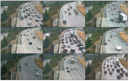 The dataset is divided into three levels according to the degree of traffic congestion, which are heavy, medium and light. There are 44 video segments in heavy state, 45 video segments in medium state, and 165 video segments in light state. Some examples of the video segments are shown in Figure 3.