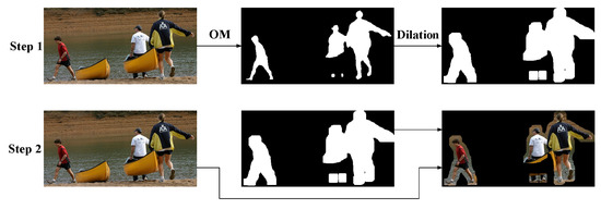 In the first step, the DM is trained and used to augment the training data and test data of the SM. OM segments out foreground objects as one class. To reduce false negatives, dilation is conducted on the masks produced by the OM. In the second step, the regions which are predicted by Step 1 as foregrounds are kept unchanged, with remaining parts set to zero. The images produced by Step 2 are then used for re-training and testing SM. Table 1 compares the performance of three cases: Only using the SM, direct training and testing of the SM based on the predictions from the DM and applying the strategy in this section to combine DM with the SM.