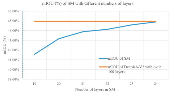 In this section, an SM with 24 layers is introduced, which is compared with the baseline model Deeplab-V2 [9] on the segmentation task.