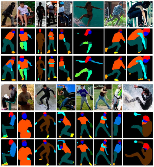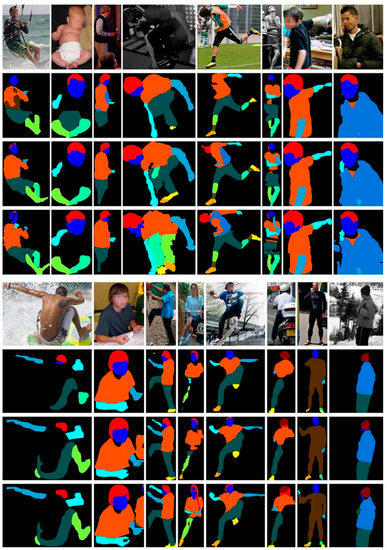 Capacity Optimization. The definition of capacity is introduced in Reference [48]. The term capacity tends to relate to volumes, quantities or memorization. It measures how complex a function a neural network can model. Existing work on capacity optimization includes pruning feature representations [49,50,51], exploring favorable properties of a shallow network [29], and maximizing the expressive power of a fixed-size network [16,30]. The first type of work focuses on pruning convolutional kernels to obtain the most compressed sets of feature representations required for a task. However, most of the related methods improved the processing speed at the cost of accuracy. The second type of method replaces the end-to-end training scheme by a sequentially training scheme. Accuracy is improved without increasing depth. However, the depth of a CNN is not yet well matched to a task. Our proposed training scheme outperforms the scheme in Reference [29], as will be shown in Section 4.3. The third type of work [30] tried to improve the performance-complexity ratio, but the added connections significantly reduced the efficiency in memory accessing. In our proposed scheme, the depth of a CNN is better matched to the complexity of a human parsing task. Moreover, a deeper but more efficient module is built to optimize the capacity of a CNN without dropping in accuracy. Experimental results will demonstrate the superiority of our proposed methods.