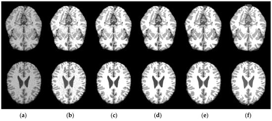 Magnetic resonance (MR) image segmentation is a key step after magnetic resonance imaging (MRI), and its results directly affect diagnosis and treatment [1,2,3]. Numerous models have been proposed to achieve this, including clustering models [4,5,6], level set models [7,8,9,10], active contour models [11,12], and so on [13,14,15]. Accurate segmentation results have important guiding significance for clinical diagnosis. However, MRI quality can be easily destroyed by noise and intensity inhomogeneity because of a series of complex reasons [16]. Intensity inhomogeneity, which is also called bias field, appears as the smooth and slow change of the gray value of a pixel for the same tissue [17]. Hence, these defects in the process of brain MRI segmentation directly lead to segmentation errors [18].