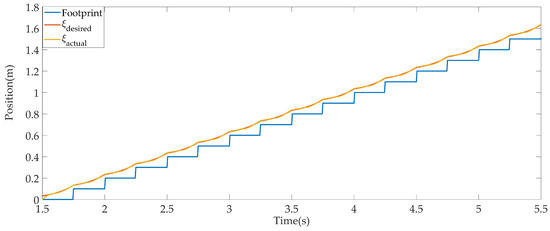 The task for the robot was exactly the same as in the simulations: walking forward with a stride of 10 cm and a step time of 0.25 s. The results of the experiments are shown in Figure 13, Figure 14, Figure 15 and Figure 16.