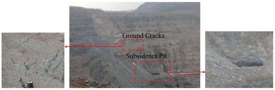 Physical modelling, on the other hand, has a major advantage over the theoretical method, as a carefully designed physical model can reproduce the deformation and failure mechanisms of the strata induced by mining under a more realistic geological conditions [15,16]. Two-dimensional (2-D) physical models with simplified geological condition have been constructed [17], but there are only a few attempts to model the strata behaviour three-dimensionally, especially when the strata in the prototype has complex joint systems. Existing 2-D or three-dimensional (3-D) model tests considered only the major structural planes, such as the fault plane and bedding plane. Any widely-distributed joints within the rock mass are normally ignored or highly simplified [18,19,20,21,22]. Indeed, the presence of rock joints and their complex distribution typically control the mechanisms of rock mass deformation and strata movement caused by mining. When the rock mass is free from joints or relatively intact, the failure mode of the strata caused by mining is usually collapse or topographic avalanche [23]. On the contrary, deep subsidence pit (up to 100 m) was formed when rock mass is composed of complex joint systems, and a series of ground fractures were also observed at the upper part of eastern final slope (see Figure 1 for an example found at the open-pit slope of Yanqianshan iron mine). Thus, a physical model that could properly and realistically capture the rock joint distribution and orientation is necessary to more correctly study the effects of rock joints on strata and surface movement.