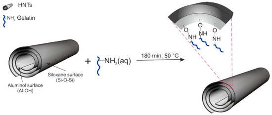 Schematic illustration of the modification process of HNTs by natural polymer (gelatin).