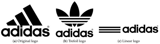 - Logo size and type. There are three main Adidas logos, namely, the original “Badge Of Sports” (BOS), the trefoil, and the linear one (as shown in Figure 1); each of them could appear as a small, medium or large logo;