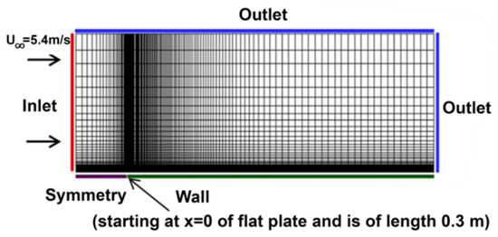 Figure 1 shows the computational mesh for the flat plate and the boundary conditions of the computational domain over the flat plate. The freestream turbulence intensity and eddy viscosity ratio values were set to