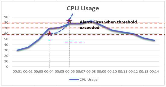 Figure 2. Alarm threshold setting based on CPU usage. - Alarm: is used to give warning when the value of the EMR metric breaches a defined range and maintains the change for a specified duration.