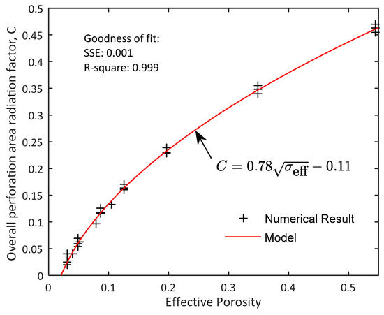 A model relating the overall perforation area radiation effect to the effective porosity was obtained by regression analysis, yielding: