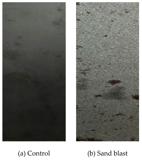 Figure 3a shows specimens with no surface processing (control) and Figure 3b shows specimens in which the steel surface was sand-blasted with silica particles [1,7].