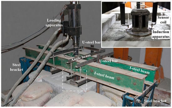 The steel beams and bars are set to provide locations to place displacement transducers. Two steel brackets are set up on both sides of the model to support the I-steel beams, which are used to hold angle steel bars. The sensor coils of eddy current displacement transducers, which provide information for vertical displacement of the model surface, are attached to the angle steels. In addition to the sensor coils, two U-steel bars are also dependent on the angel steel to provide locations for the transducers to measure the horizontal displacement of the filling model under cyclic loading. Above the model is the loading apparatus which provides cyclic loading, as shown in Figure 1.