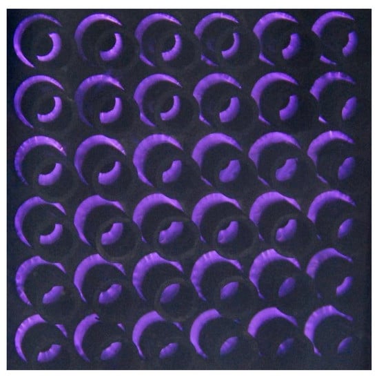 As a second type of load, a DBD-type reactor was used as shown in Figure 13. Cylindrical, metal electrodes of the reactor are separated with dielectric tubes made of Al2O3 (aluminum oxide). The discharge matrix consists of 36 identical discharge tubes. The total capacitance of the reactor was 65 pF.