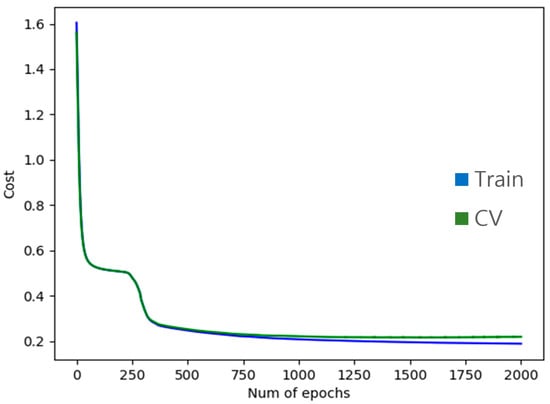 Figure 5 shows the cross validation data and training data cost for learning epochs. By checking the cross validation, it is possible to determine the optimum number of epochs and check whether there is a problem of overfitting or underfitting. In this graph, after 1000 repetitions, the CV graph and the training graph are slightly different. Therefore, it can be concluded that there is no significant meaning for the more iterative learning.