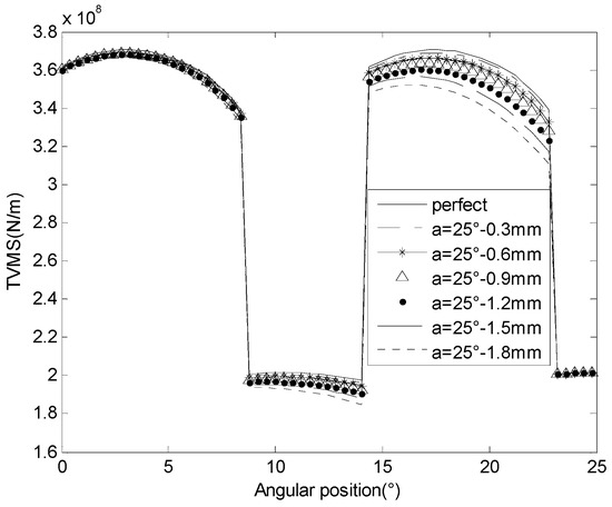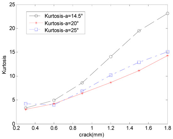 3.1. Meshing Stiffness and Vibration Response for Cracked Gears in Different Pressure Angles