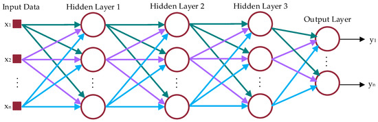 In a forward non-linear neural network (FNN), the flow of information (signals) is unidirectional. Its structure consists of the input layer, two or more hidden layers, and the output layer (Figure 5). All layer inputs can be linked only with the neurons in the preceding layer. Input signals x in a neuron are added to weights w. Neuron y’s output signal is calculated using a non-linear activation function φ, according to the relationship [38]: