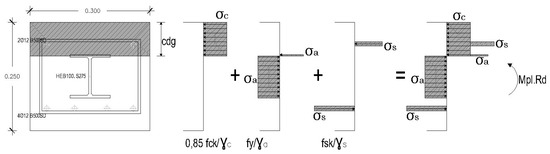 Mpl,Rd = Wpa fy/γa + Wpc 0,85 fck/γc + Wps fsk/γs