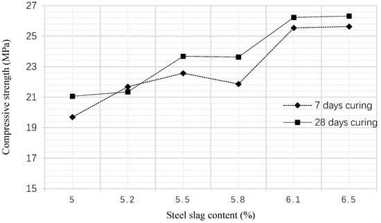 In order to make the permeable brick having a certain compressive strength, in the subsequent tests, the proportion of the steel slag was adjusted to 6.5%.