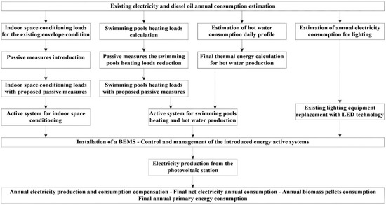 The authors of this study gratefully acknowledge the assistance and the contribution of: the Municipal Council of the Municipality of Heraklion, Crete, for the assignment and the funding of this research, especially the Vice Mayors Yiannis Anastasakis and Kostas Vardavas; the Technical Service and the Management of the Pancretan Stadium for the high quality and effective support of the research team on the required data gathering and on the understanding of the existing infrastructure in the Stadium, especially Tsirakos Dimitris, Konidakis Dimitris and Kalogerakis Vasilis; the Technical Service of the Municipality of Heraklion for the administrative support of the project, especially Albantakis Dimitris. Deligiorgis Christos, from the company Alumil S.A., for the design of the p/v panels foundation; Karoubis Pavlos, for the accomplishment of the new lighting system study of the main and the auxiliary stadiums; Michopoulos Apostolos, for his contribution on the computational simulation of the geothermal system; and Mrs Flabouri Urania, for the design and the technical configuration of the new BEMS.