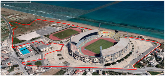 The construction of the Pancretan Stadium’s was integrated in 2004. The Stadium was firstly used to host specific sports for the 2004 Olympic Games. It is located at the western suburb of Heraklion, Crete, Greece, next to the north coastline of the island (Figure 2). Since its construction, the main Stadium’s ground regularly hosts football matches for the first or the second Greek football national categories and the Greek national football team, as well as national championships or international events on athletics.