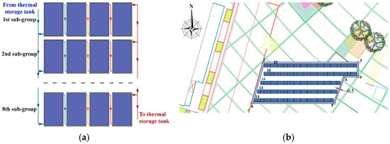 Thermal energy needs constitute a major energy consumption in stadiums. Most commonly, thermal energy is required in sports facilities for the coverage of hot water needs (e.g., in changing rooms) and heating of any possibly involved swimming pools. The most feasible technology for the coverage of thermal energy needs is the combined operation of solar collectors (selective coating or vacuum tubes for colder climates) with conventional heaters [21,22,23]. To maximize the economic feasibility and the energy saving results, biomass heaters can be alternatively introduced [24]. In the most conservative implementations, thermal energy from either the solar collectors’ field or the heater is stored in a common thermal storage tank, to be provided for the heating distribution network [24,25]. In more advanced approaches, thermal energy from the solar collectors can be directly provided for the heating distribution network [26]. Additionally, solar combi-systems can be also utilized for combined cooling production, by being co-operated with absorption chillers [27]. Finally, a novel approach is the combined production of thermal energy and electricity with photovoltaic hybrid solar thermal panels, maximizing the overall efficiency of the involved technology and the economic feasibility of the project [28,29].