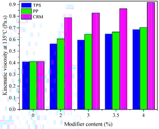 Bouraima et al. utilized different modifiers such as TPS, high-viscosity additive (HVA), road-science technology (RST), and SBS additives, summarizing that the conventional binders did not meet the requirements of a 60 °C dynamic viscosity with TPS and HVA modifiers. Besides, the SBS modified asphalt binder has better viscosity. Their results concluded that the SBS modifier is a suitable choice [10].