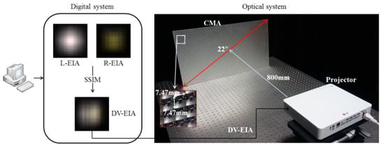 | Elemental Image Array (EIA) | - Resolution - Number of EIs - Resolution of each EI | 1920 × 1080 pixels 77 × 44 25 × 25 pixels |