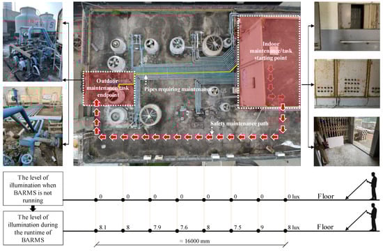 Maintenance in dark or low lumen conditions is frequently encountered on working sites where safety is paramount. Safe routes and procedures should be clearly indicated with the lighting function clearly connected to operational signage. BARMS provides a route clear of unanticipated obstacles and an adaptable orientation for optimal nearby viewing angle. A BARMS-enabled smartphone becomes very helpful, with its easy mobility and embedded flashlight. The region of interest, lit by the smartphone flashlight, can now be connected to the entire system for a better understanding of the possibly affected components. An AR system, which can be very beneficial in working outdoors at night or in similar dark indoor situations, can now achieve an accurate level of reality that combines with the overall scope of the setting by using a commonly available illumination function. Consequently, work difficultly is significantly reduced, especially in cases involving an unfamiliar space.