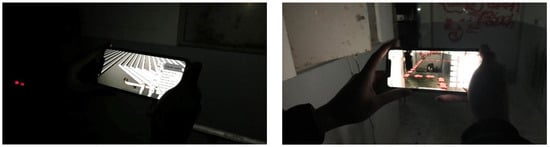 Many researchers engaged in AR face the problem of poor geo-referencing []. Although visual tracking usually achieves the best results with low frequency motion, it is likely to fail with rapid camera movement []. Although BARMS can provide mediated information to assist with geometry and information mapping, drifting (0–20 cm) occurs at the far end of a pipe beginning when approximately 16.5 m away from the starting reference point. This deviation can also increase when workers approach the maintenance location from a greater distance. Currently, an auxiliary application that runs at a lower hierarchical position is used to eliminate drift at the distant location, next to the end of the pipe.