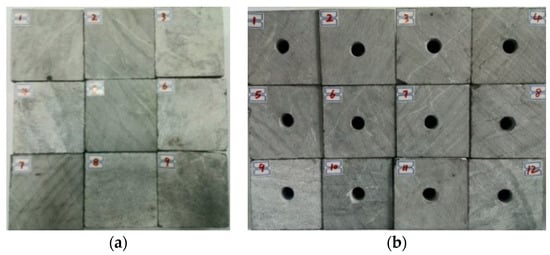Experimental samples. (a) intact rock samples; (b) holey rock samples.