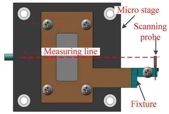 Figure 6 shows the assembly of the scanning probe and the micro stage. The scanning probe is driven to move left and right by the micro stage, and its displacement is measured accurately with a capacitance displacement sensor, which is integrated with the micro stage. The stylus of the scanning probe is adjusted to align with the measuring line of the capacitance sensor and thus the Abbe error of the probe displacement is reduced.