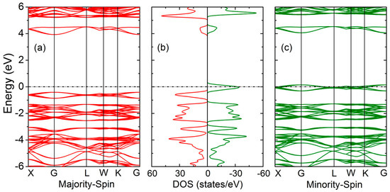 - Xie, W.H.; Xu, Y.Q.; Liu, B.G.; Pettifor, D.G. Half-metallic ferromagnetism and structural stability of zincblende phases of the transition-metal chalcogenides. Phys. Rev. Lett. 2003, 91, 037204. [Google Scholar] [CrossRef]