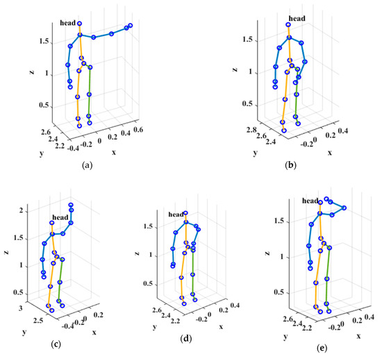 The five types of motion selected do not include nose-touching movements, because when the subjects do this motion, the occlusion phenomenon is obvious. In order to improve the accuracy of the assessment, based on reference [30] and the Fugl–Meyer scale, the five motions in this paper were selected.