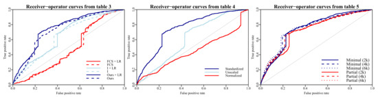 Receiver operator curves corresponding to the AUROC values on the test set in Table 3.