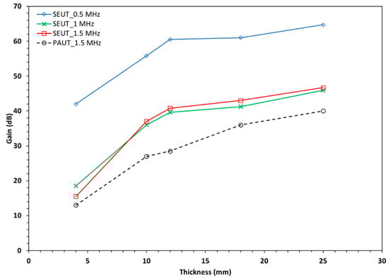 | Frequency | Method | Sample | Thickness (mm) | Gain (dB) | Time | Signal-to-Noise Ratio |