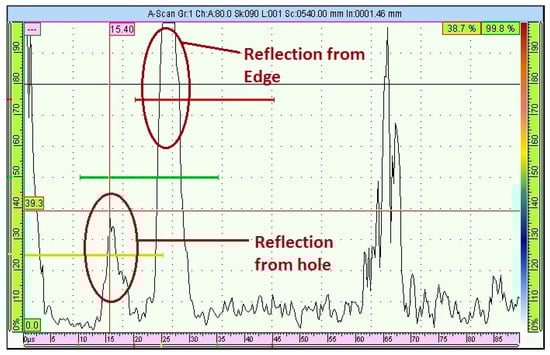 | Experimental Trials # | Hole Diameter (mm) | Signal | Distance of Transducer from The Edge (mm) | Arrival Time (us) | DTime (us) | Amplitude (%) | ||