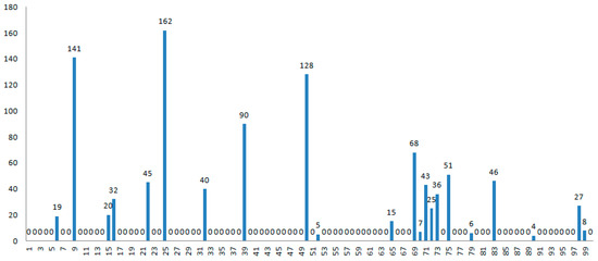 From Figure 10, it can be seen that some systems are frequently selected in the Pareto set. However, some systems are seldom selected or even never selected. To compare the importance degree of different systems, the frequencies for all systems of being selected in the Pareto set is counted. Systems of S6, S9, S15, S16, S22, S25, S32, S39, S50, S52, S65, S69, S70, S71, S72, S73, S75, S79, S83, S90, S98, and S99 are selected by at least one system portfolio in the Pareto set. In addition, the systems S9, S25, S50 are quite important according to the high selected numbers in the Pareto set. Further, the rank of systems according to selected numbers is: S25 > S9 > S50 > S39 > S69 > S75 > S83 > S22 > S71 > S32 > S73 > S16 > S98 > S72 > S15 > S6 > S65 > S99 > S70 > S79 > S52 > S90, which to some extend indicates the importance degrees of selected systems. As regarding to the rest systems, they can be directly neglected in the system portfolio selection process.