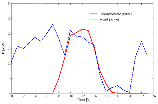 Case 2: the RE production profile is flat. The RE power is the average value of the power curve shown in Figure 3.